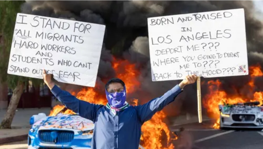 Ya, ketegangan di Los Angeles, Amerika Serikat (AS) memuncak pada Minggu (8/6/2025).