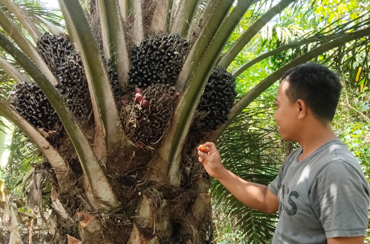 “Alhamdulillah, rata-rata petani sudah bisa panen. Ini menjadi pondasi ekonomi keluarga, ditambah lagi dengan penghasilan tambahan lain di luar sawit”