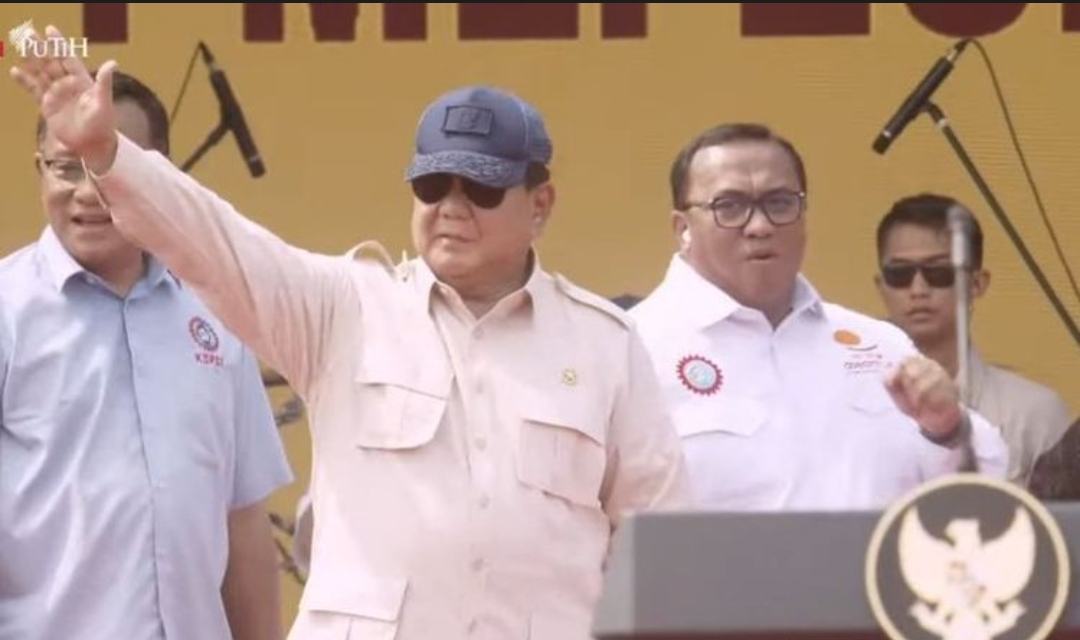 Di hadapan buruh, Presiden Prabowo Subianto mengklaim dirinya sebagai presiden para buruh dan orang yang mengalami kesusahan.